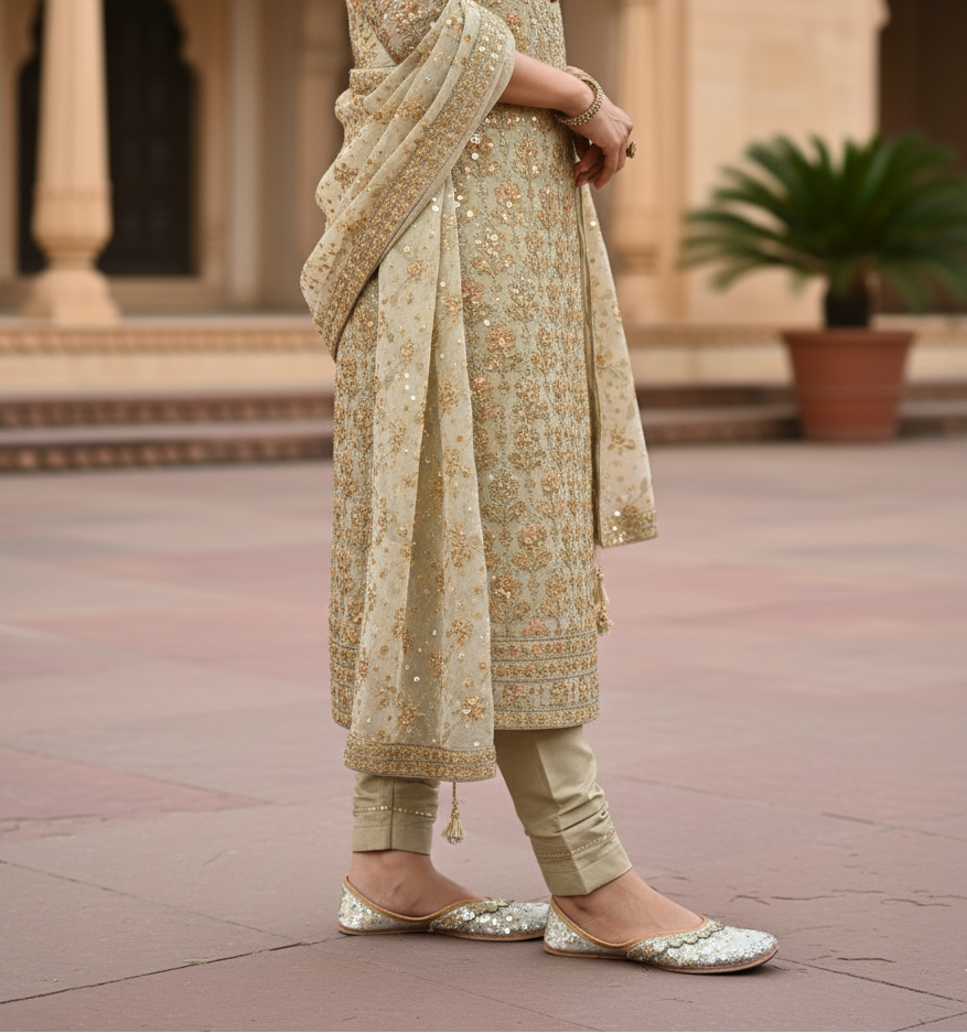 Discover Noor – a handcrafted jutti with intricate embroidery and sequins. Perfect for weddings, festivals & daily ethnic wear. Extra 10% off online orders!